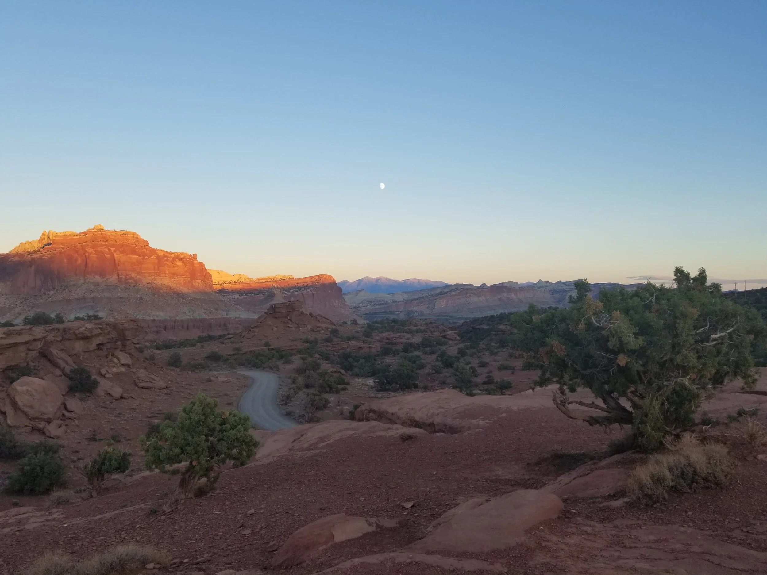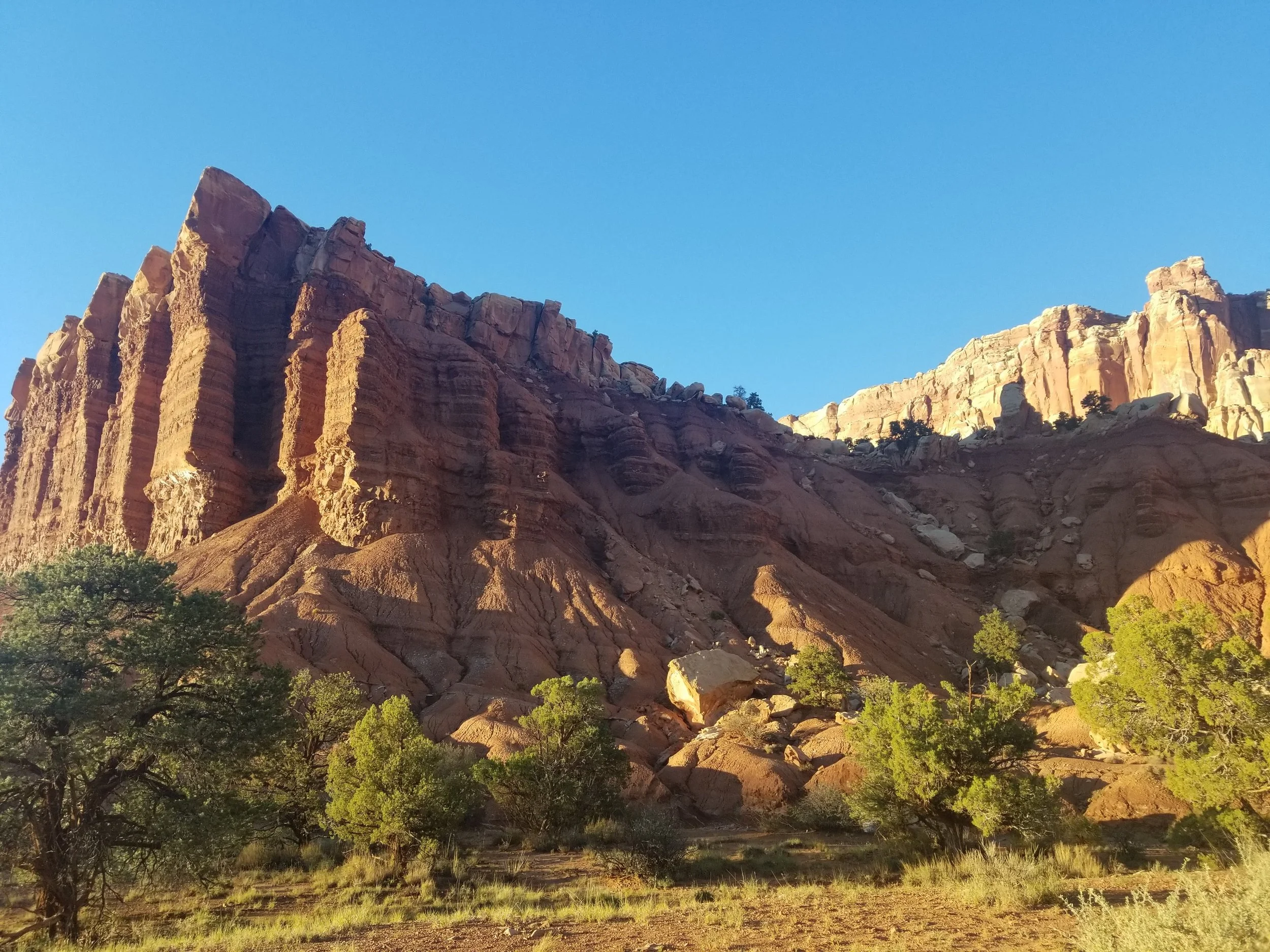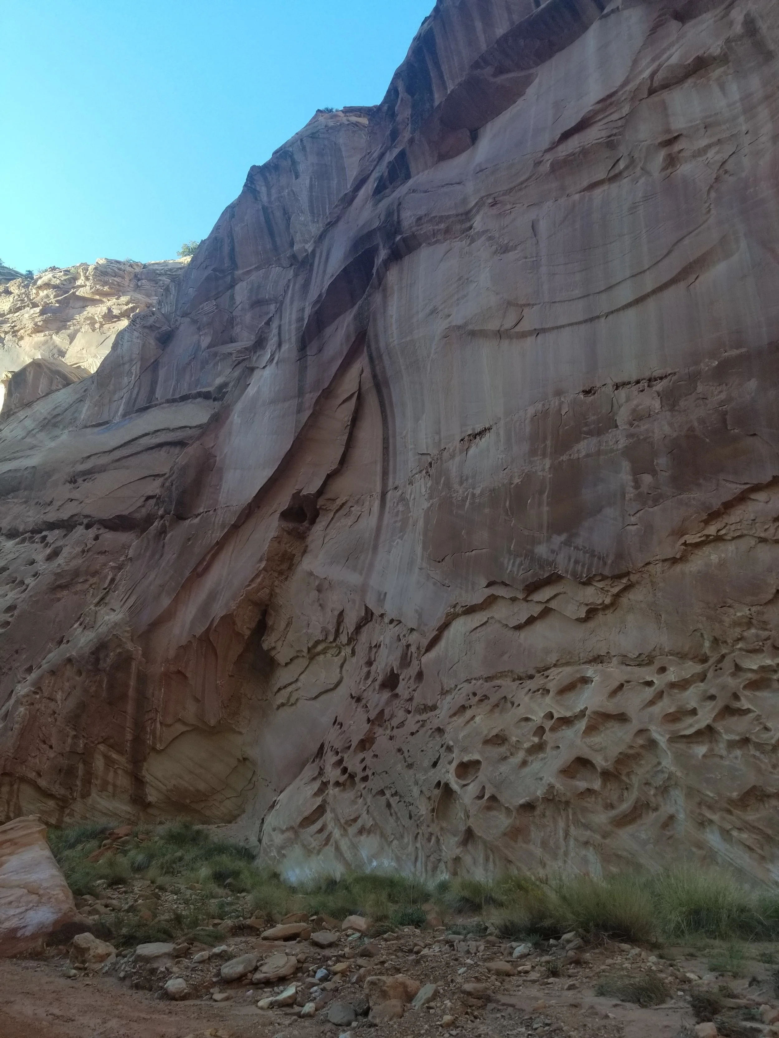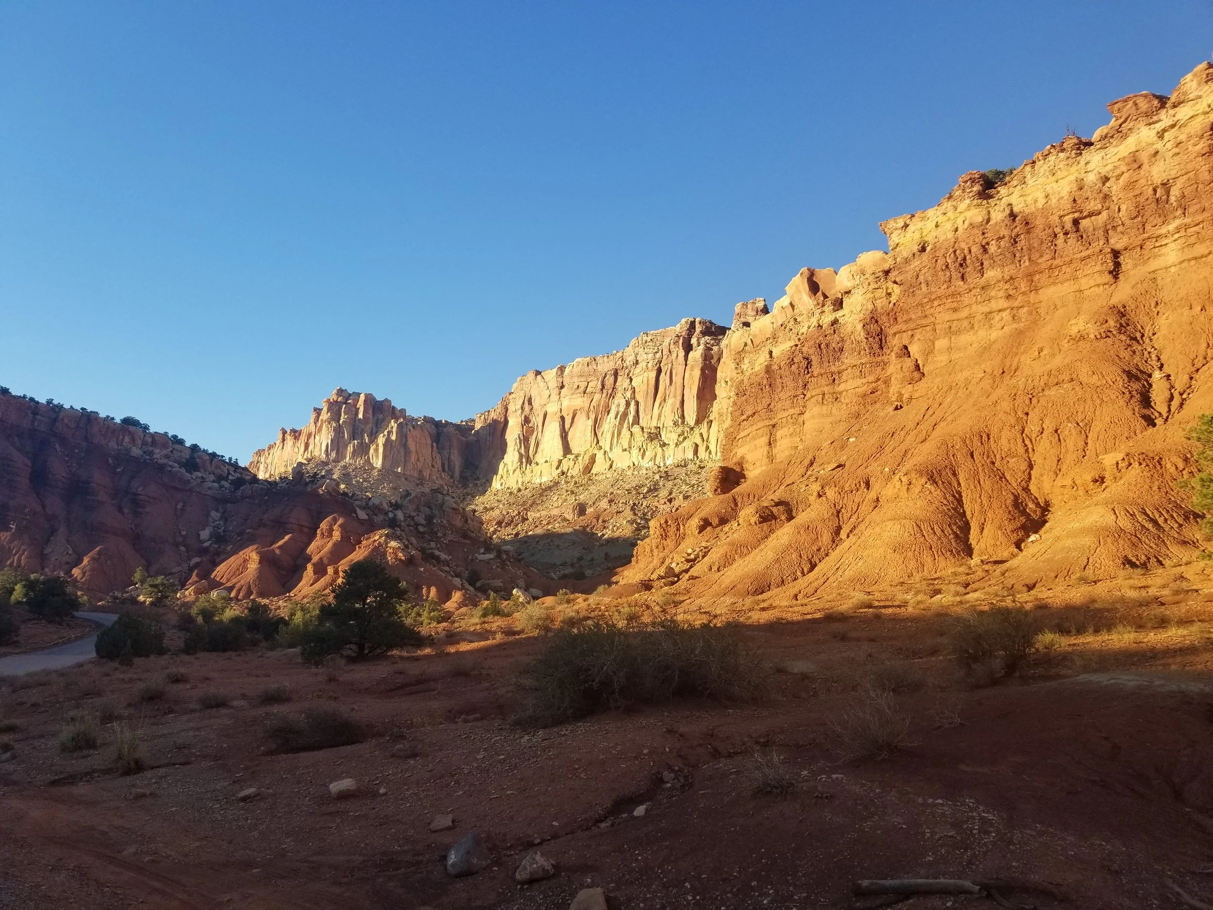 While on our recent road trip we went to Capitol Reef in Utah on the way to our destination. It is a fold in the earth’s crust caused by a fault. With all the erosion added to this the landscape is pretty wild with pink and orange walls to wander between and lots of patterns on these walls that you can’t help but think about the processes that created them.