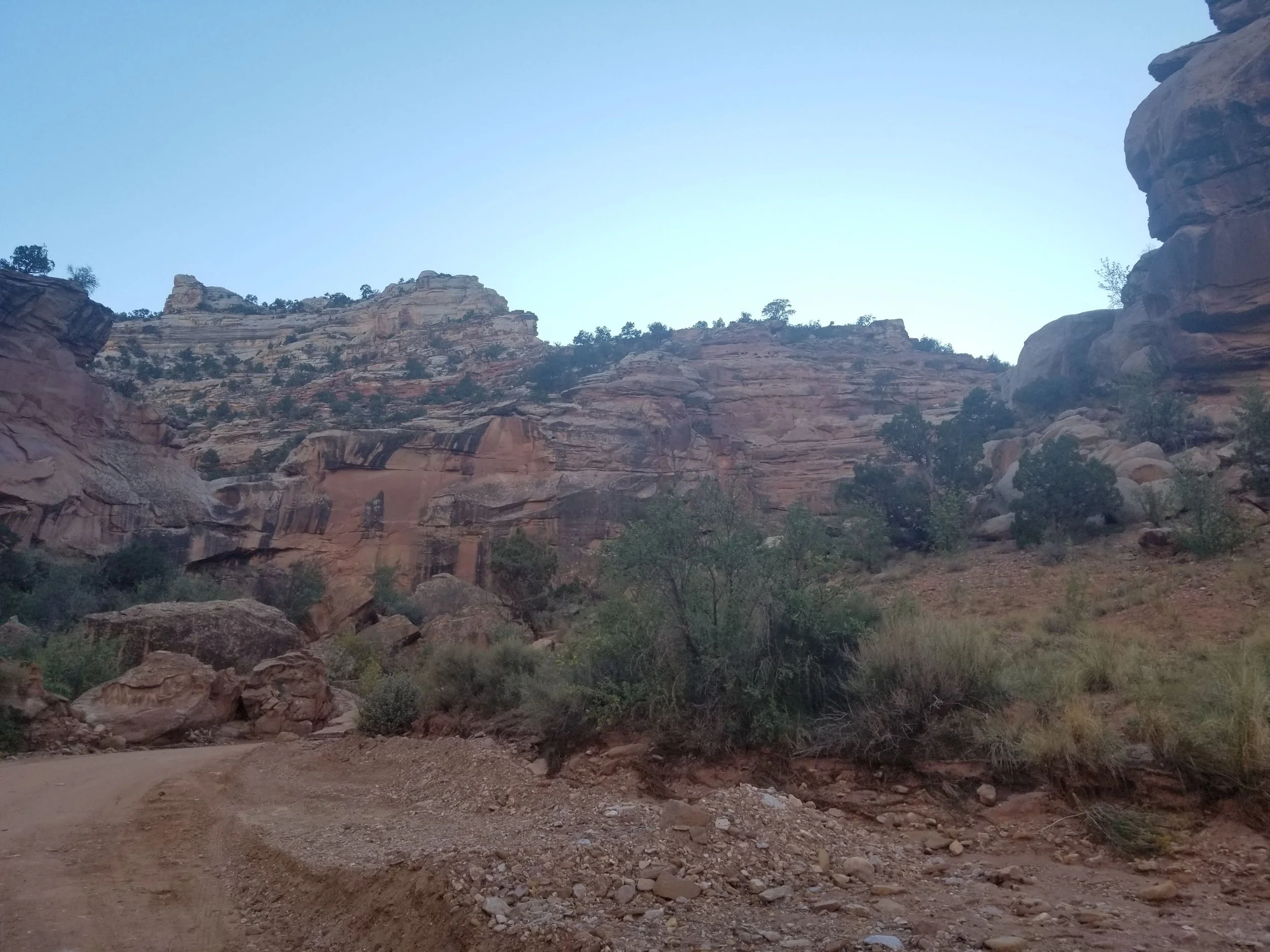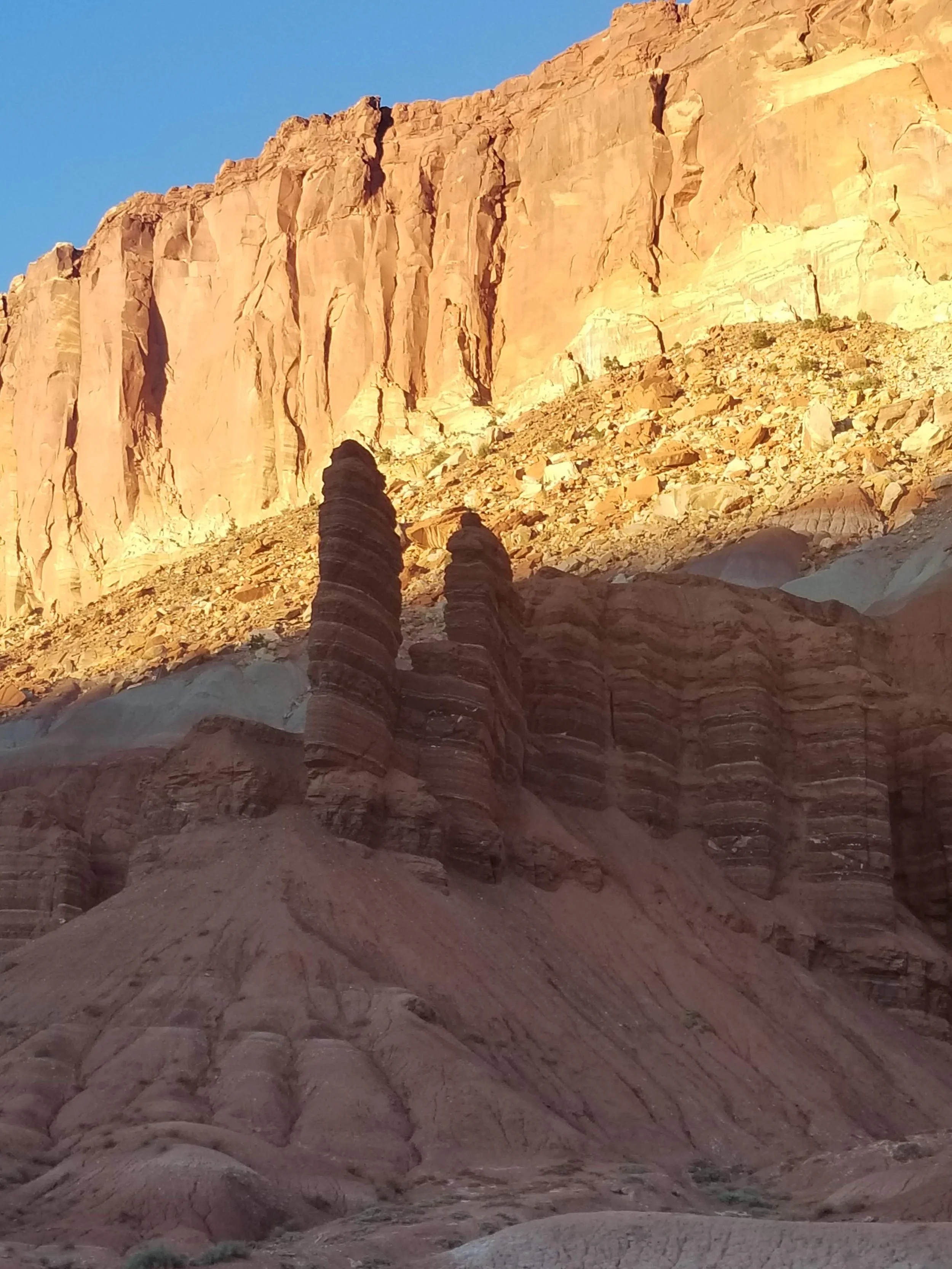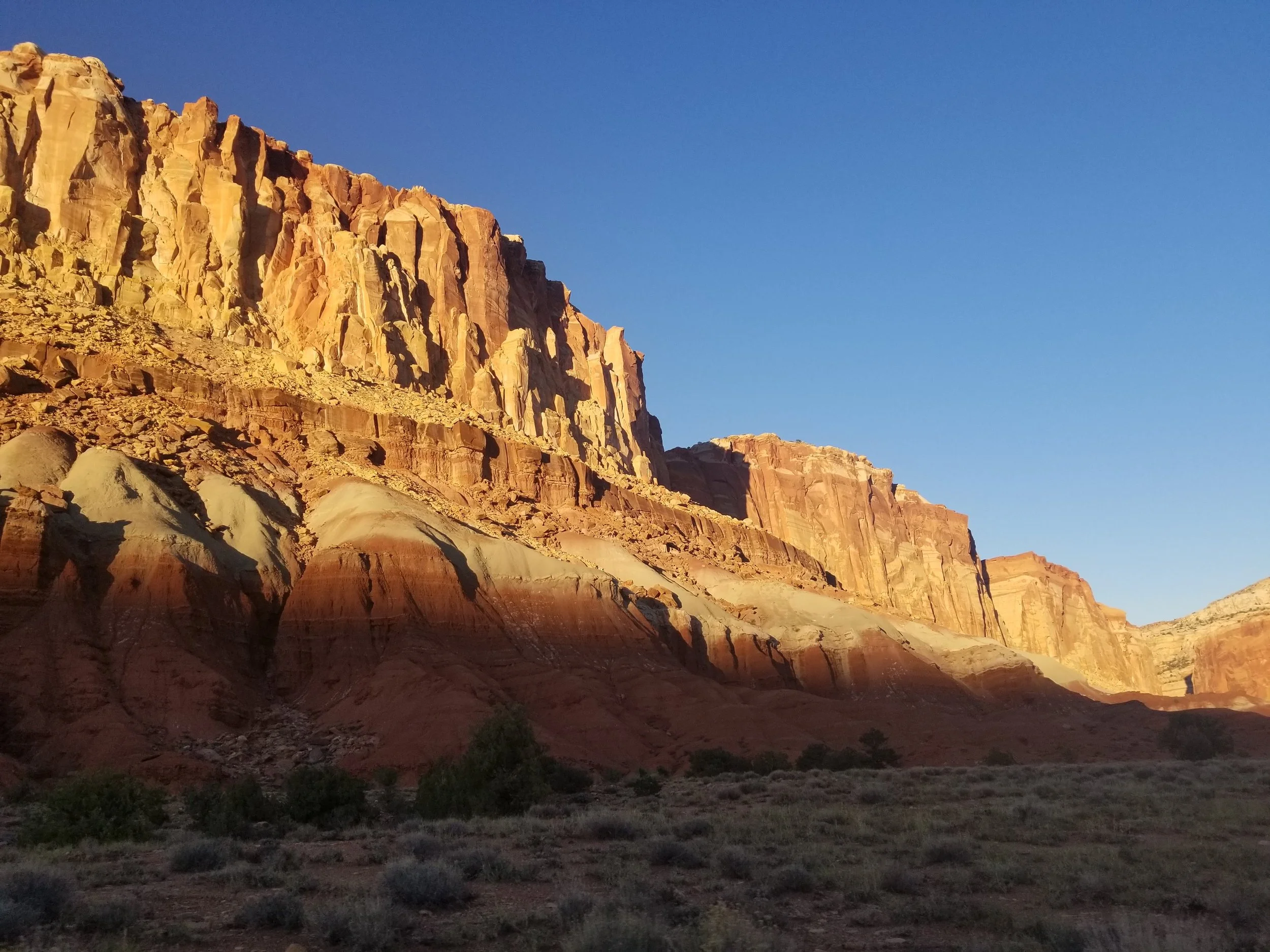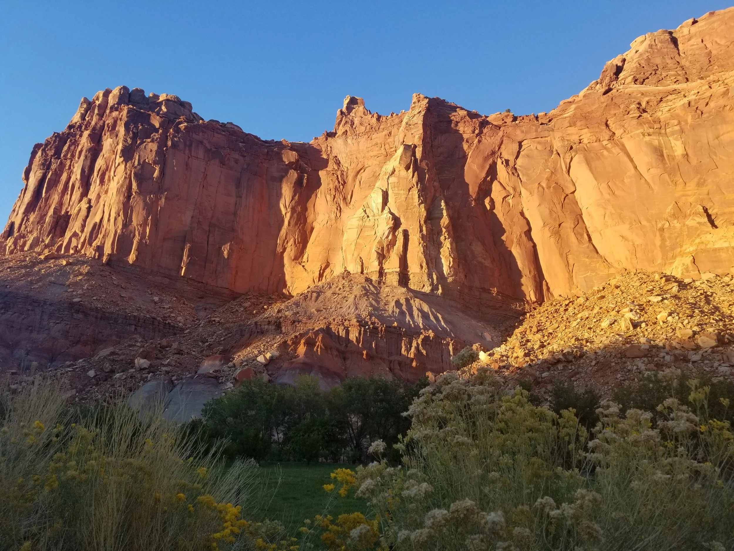 While on our recent road trip we went to Capitol Reef in Utah on the way to our destination. It is a fold in the earth’s crust caused by a fault. With all the erosion added to this the landscape is pretty wild with pink and orange walls to wander between and lots of patterns on these walls that you can’t help but think about the processes that created them.