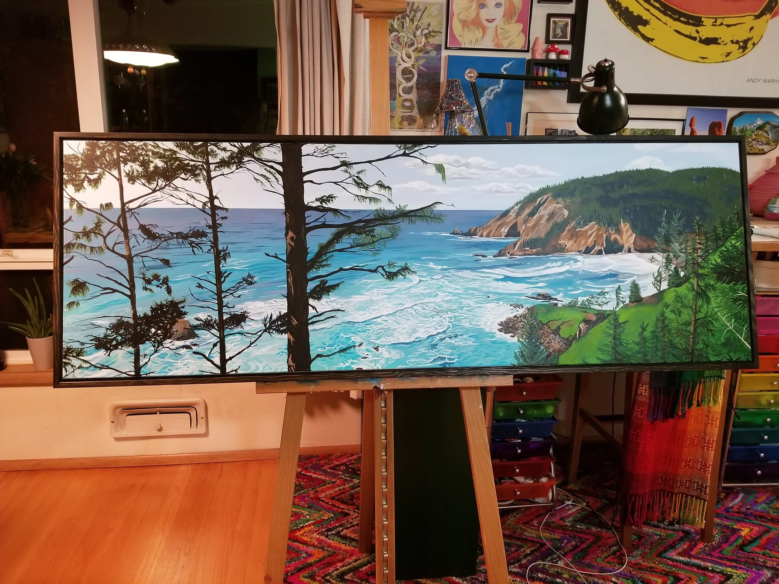 My latest large landscape is up in its home at Agger Chiropractic Clinic off NE Burnside and 28th in the Trolley Building. I have done all of the art in their lobby and am proud to have added this piece to their collection. Dr Agger is a great chiropractor so if you need an adjustment and are in the greater PDX area look him up!