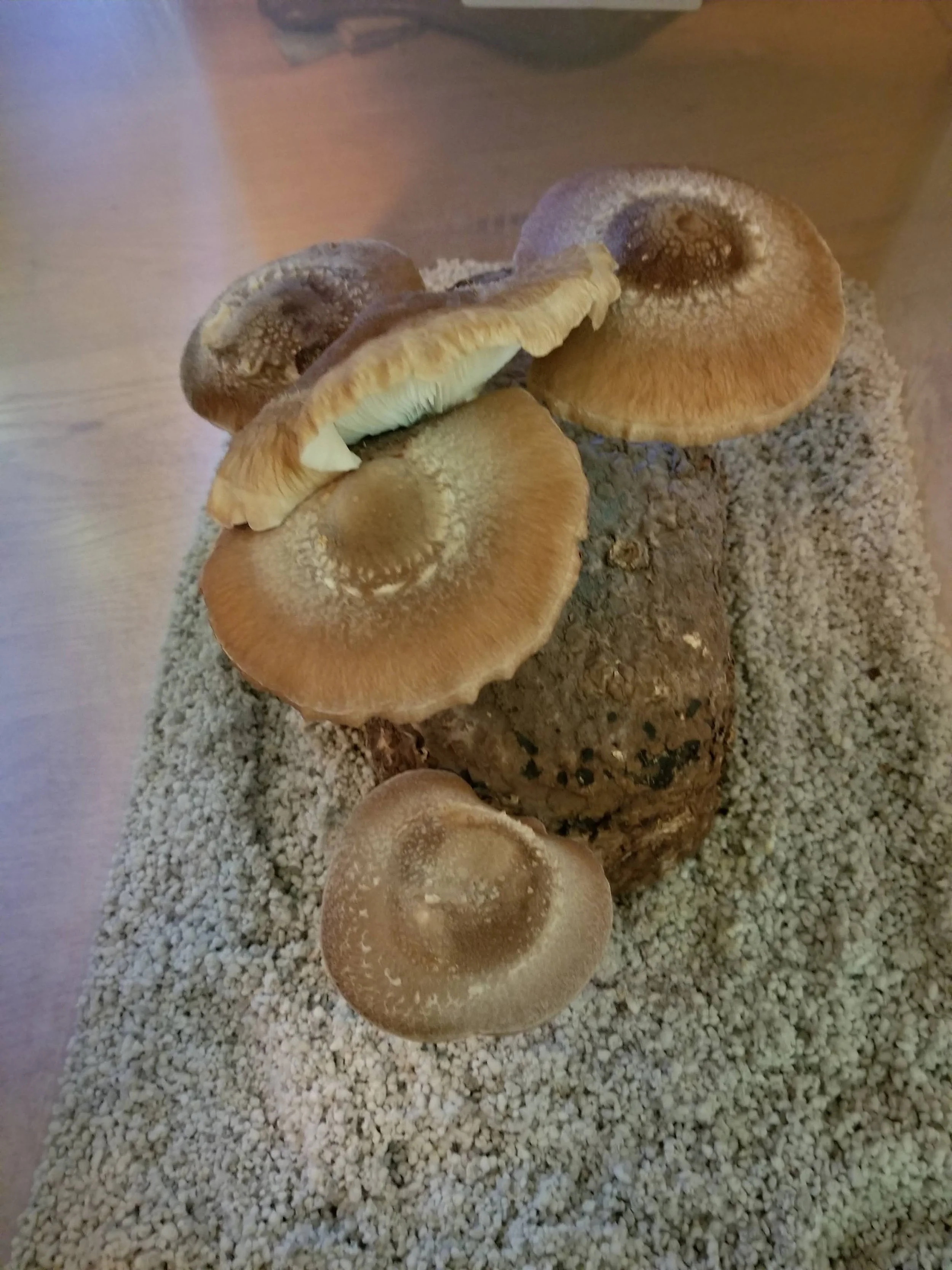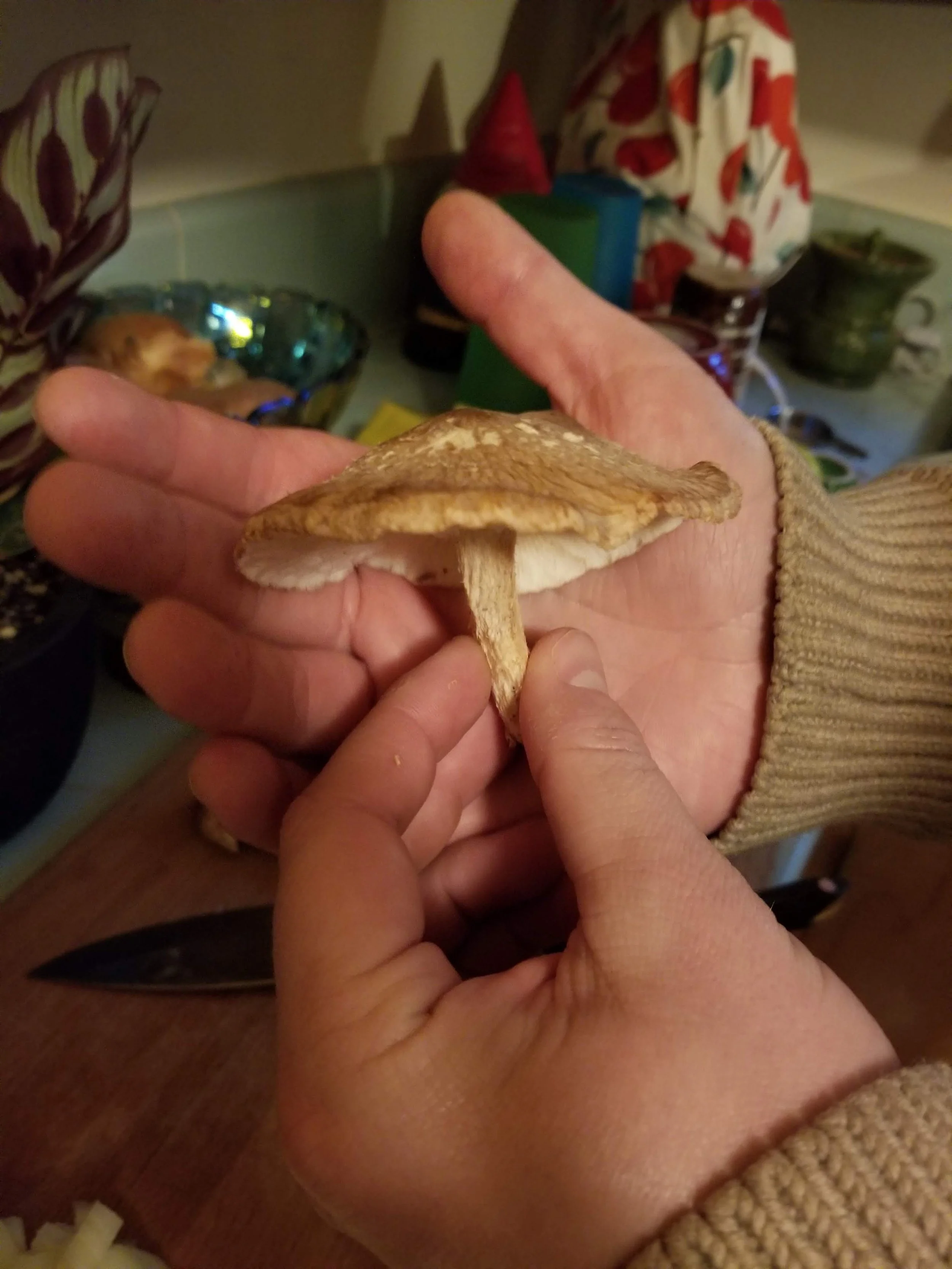 This was one of the mushrooms from when we opened the bag to set the block up. It was pretty large for a shittake- but it has nothing on the ones we would end up growing!