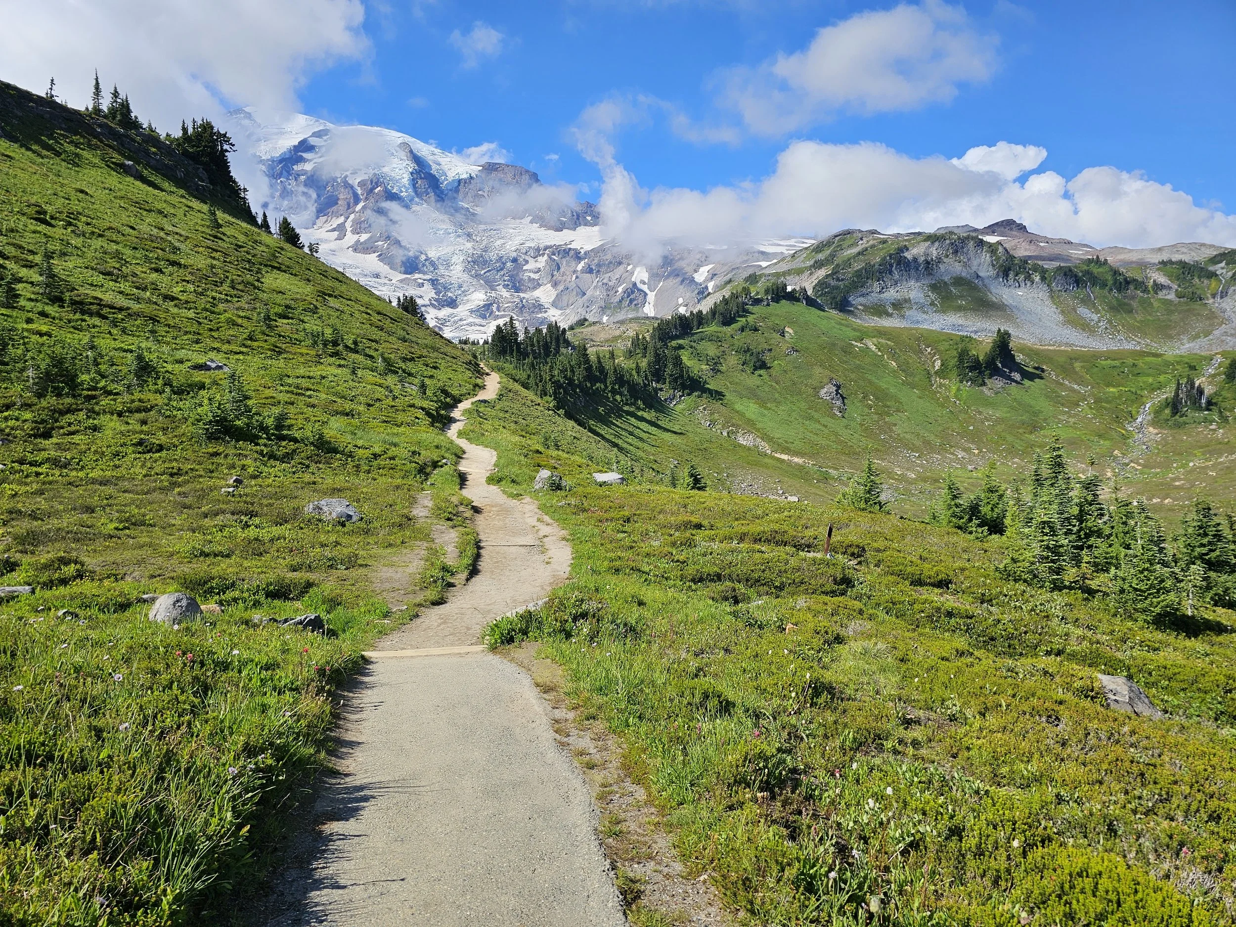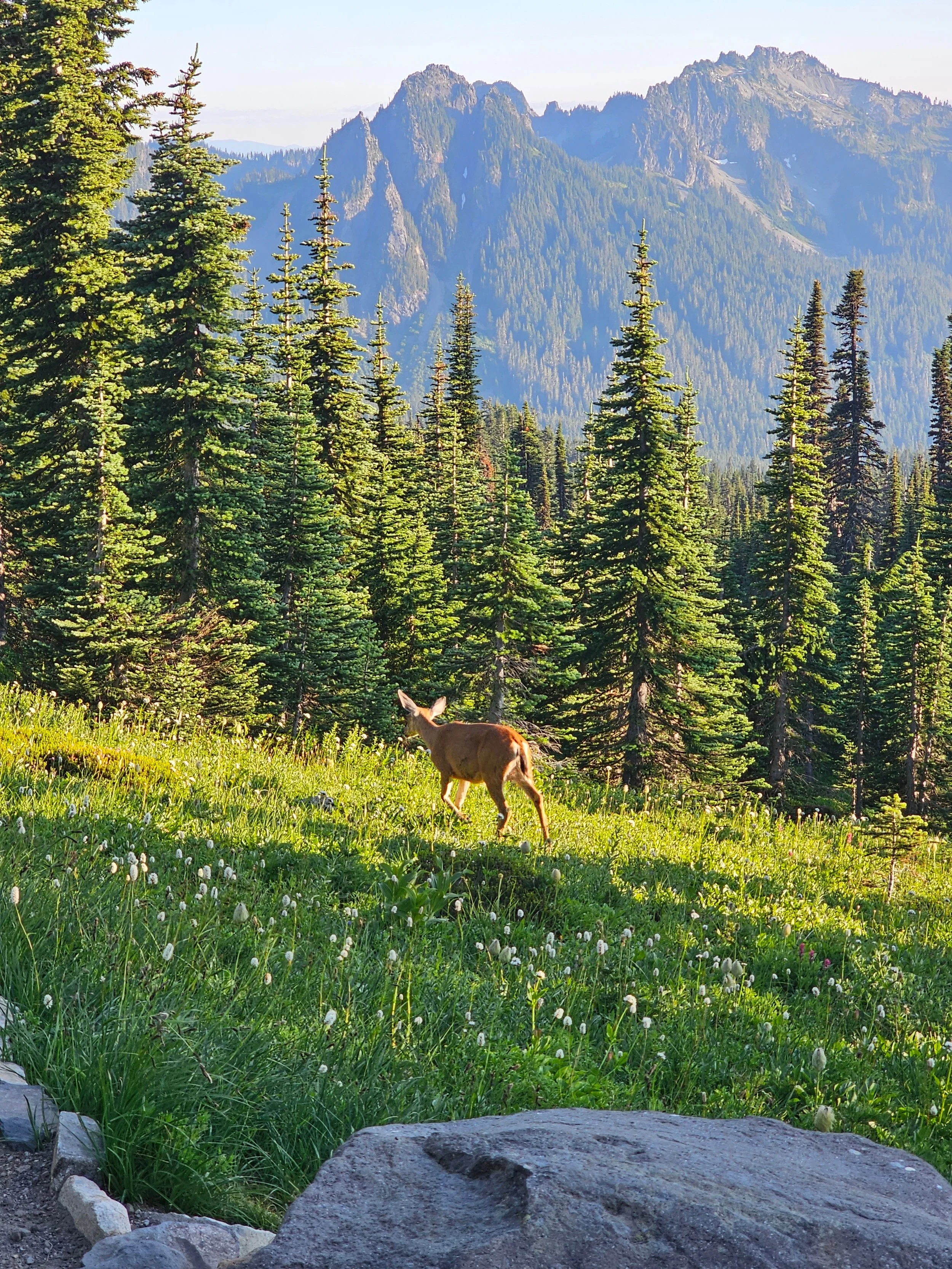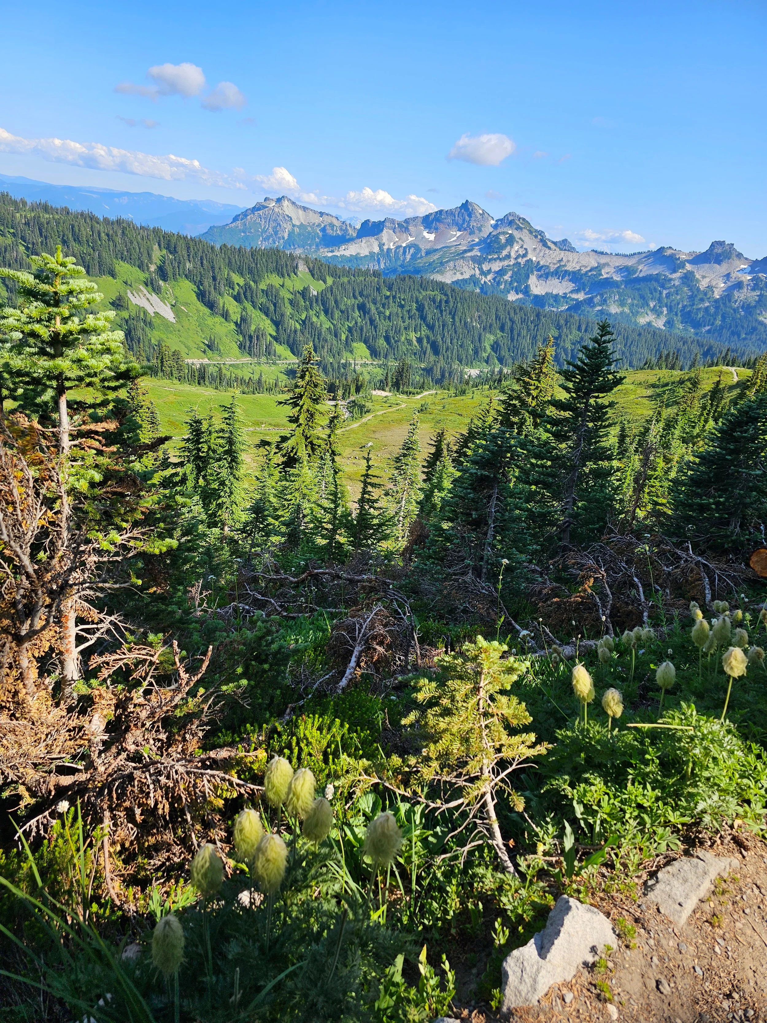 We did a 4 mile hike starting at Paradise and going up. It was a perfect day for it with all the expansive views, wildlife and wildflowers we saw.