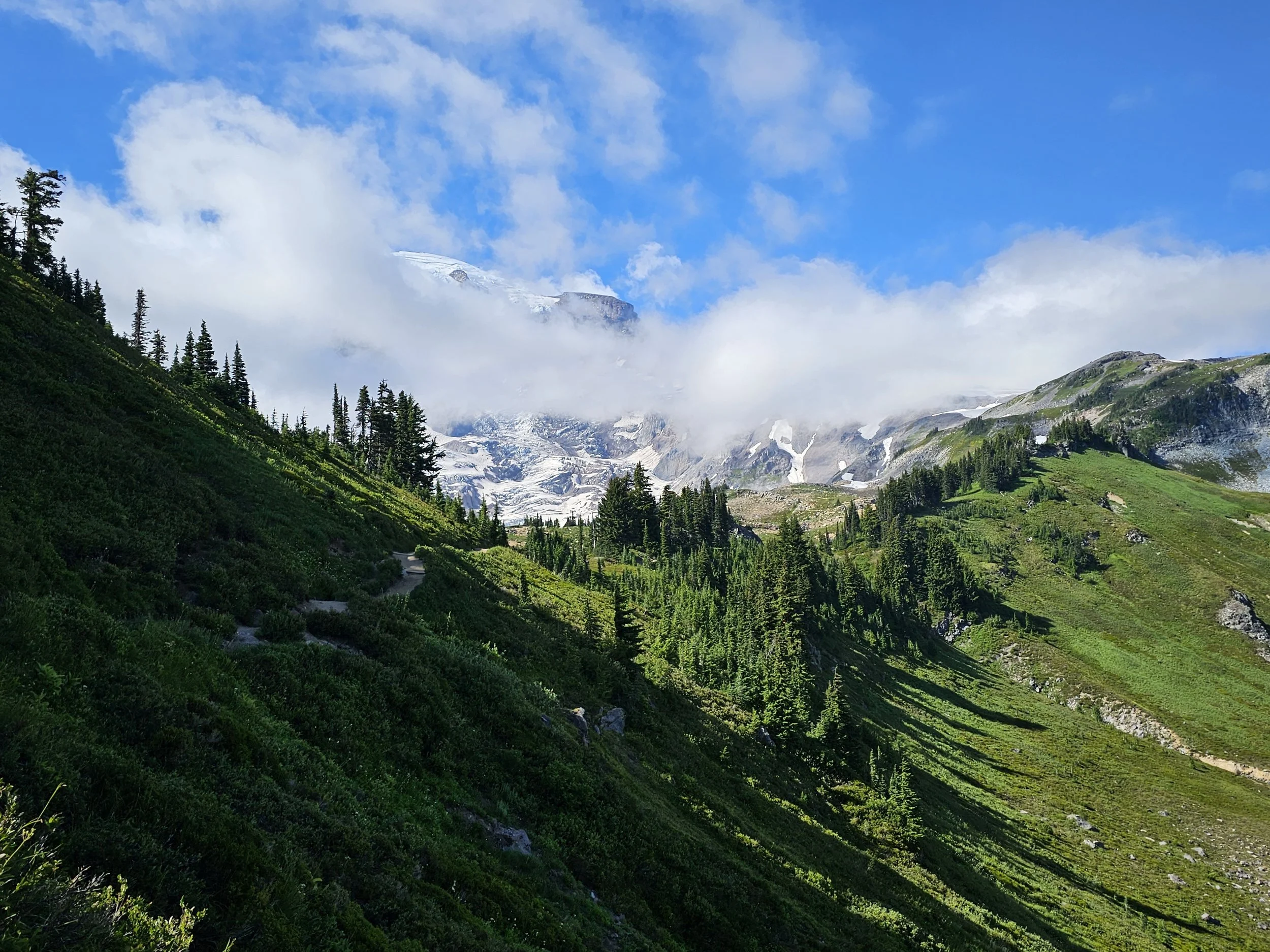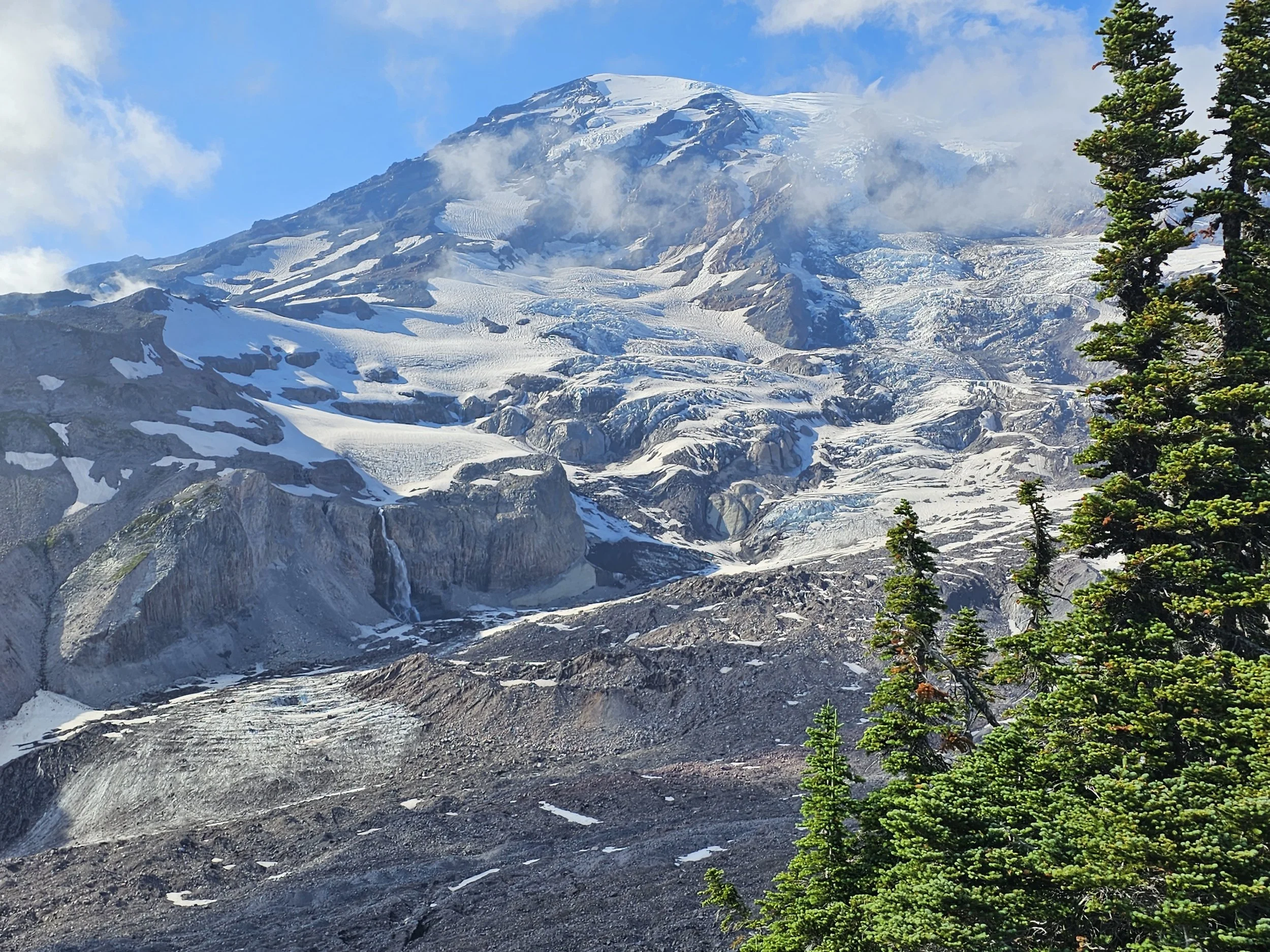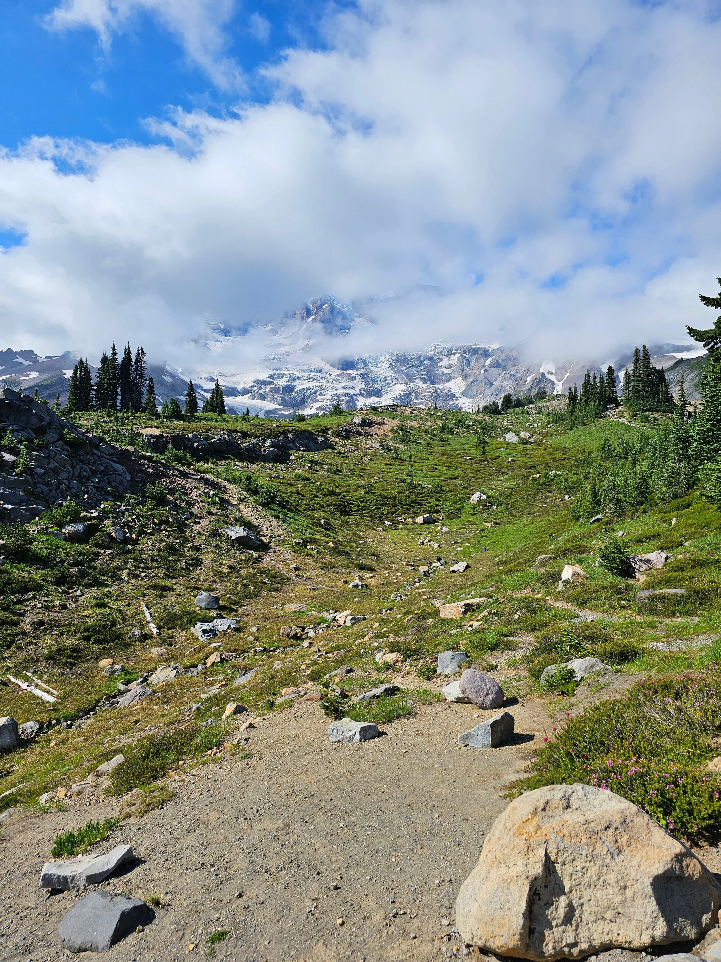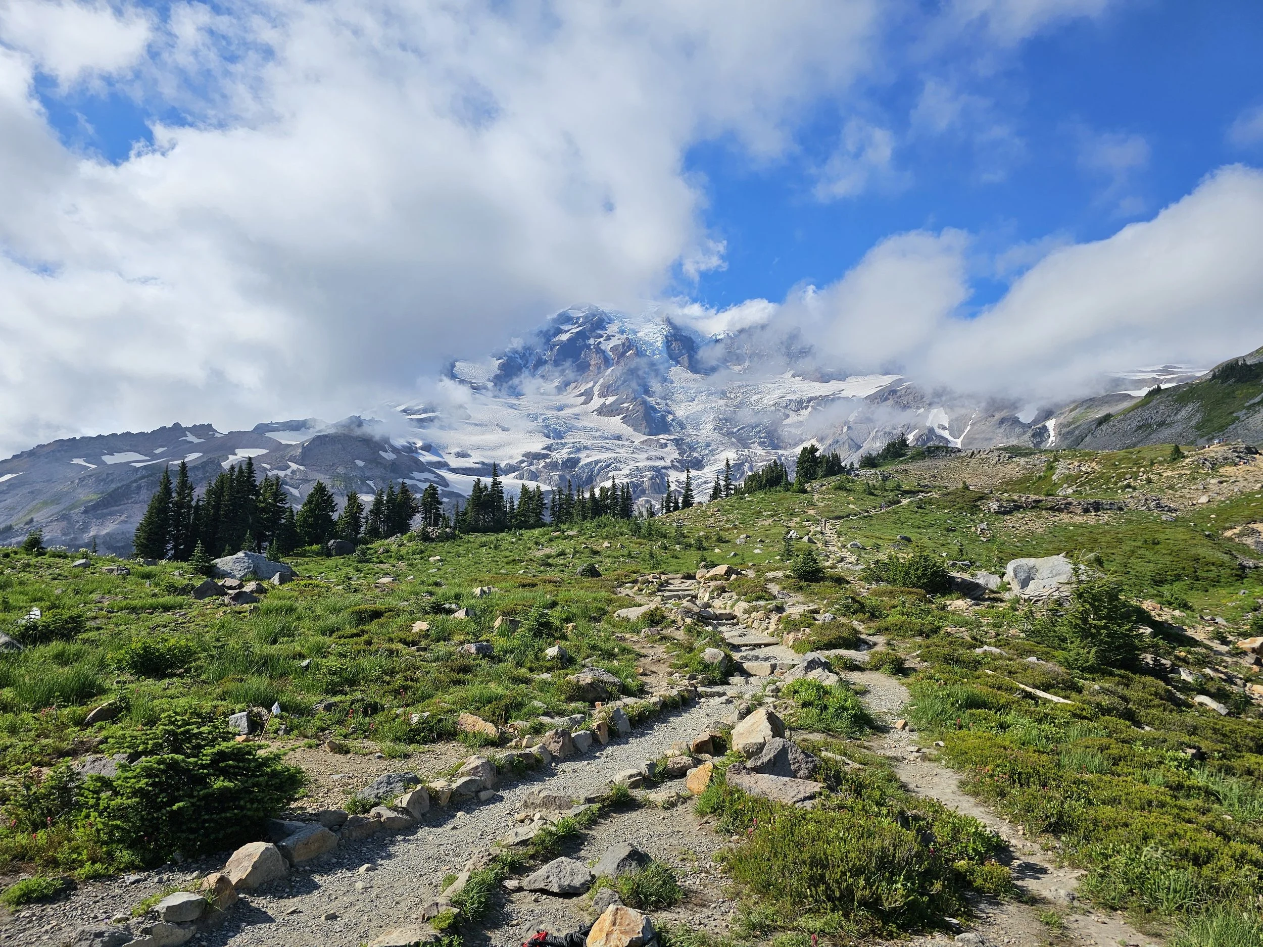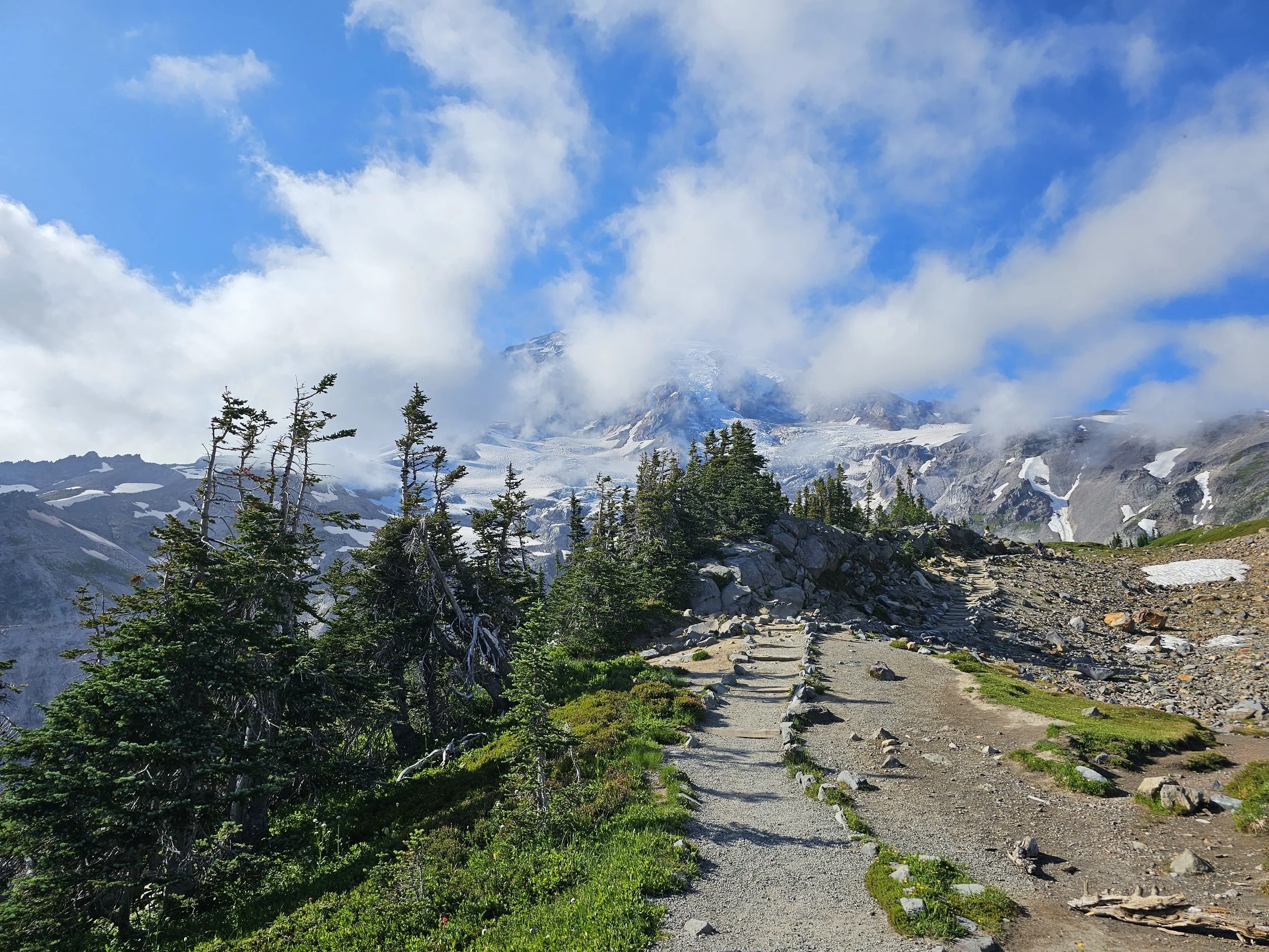 We weren’t sure at first we would be able to see Rainier as the clouds hugged it on our way to Paradise.