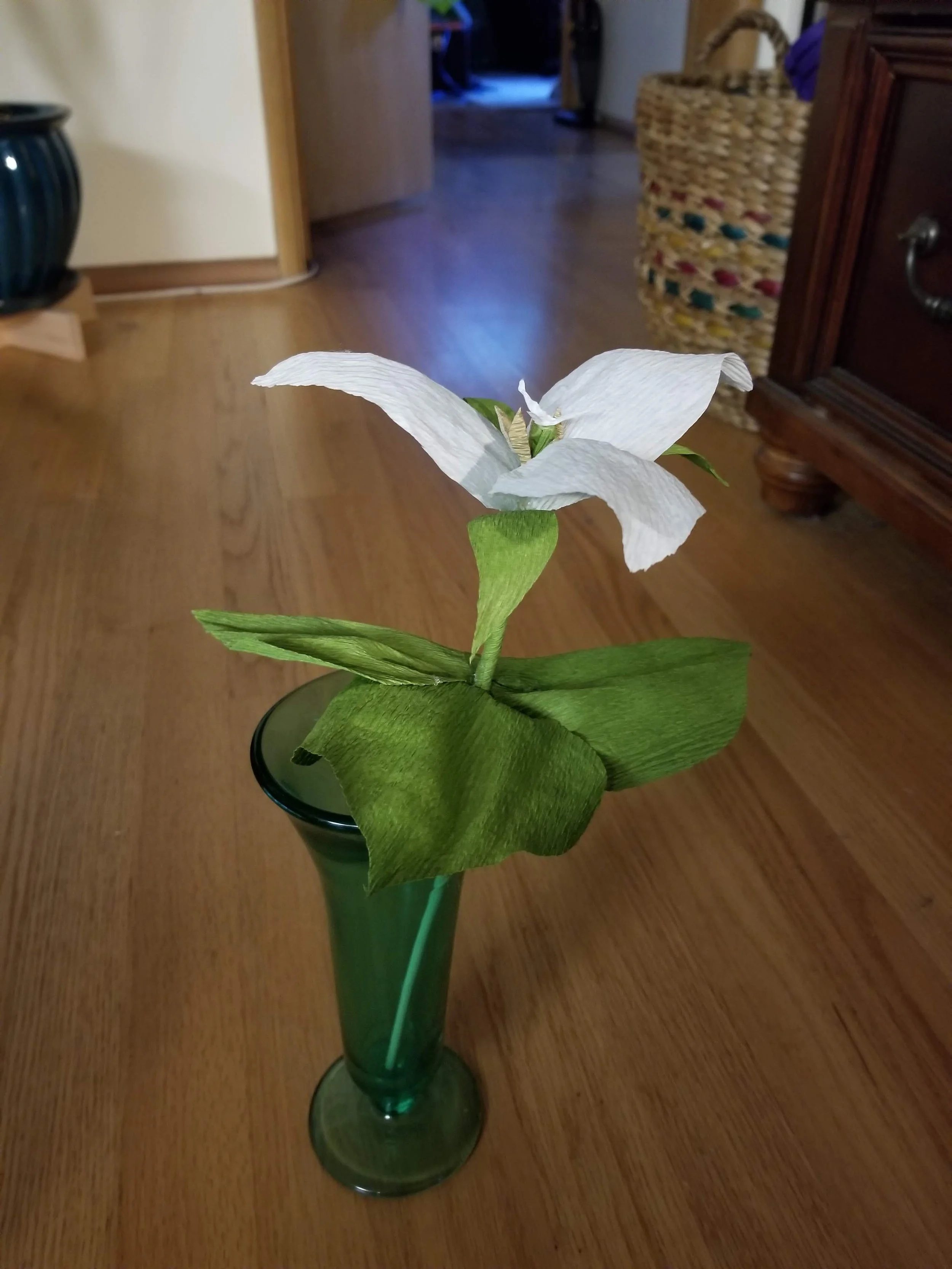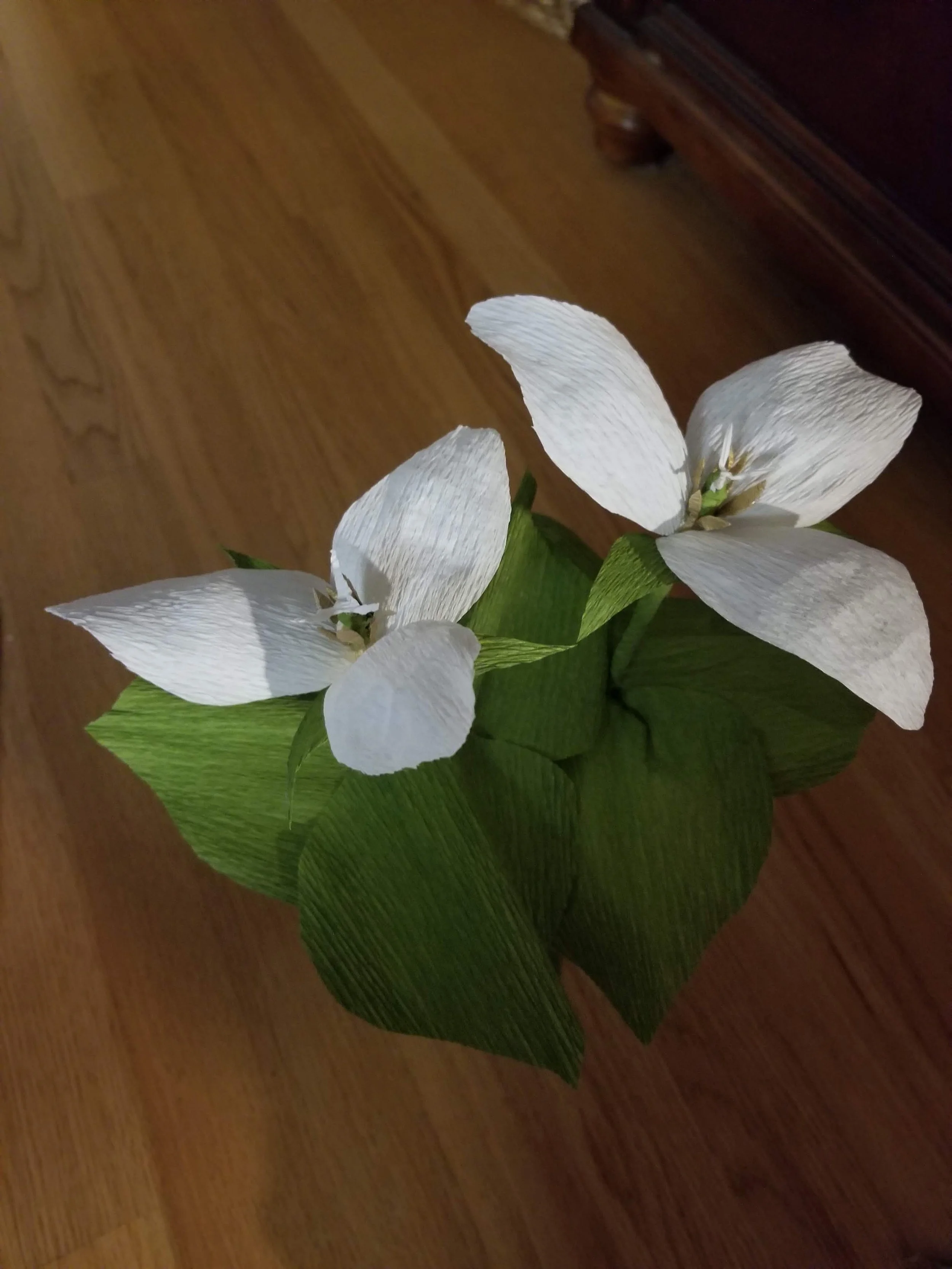 Why paper flowers? They last a long time, you can get really creative, and you can make flowers that you couldn’t have naturally. That last bit was the inspiration for this post. The sun has been out this weekend and it feels like spring (though I am not convinced more winter isn’t on its way) so spring flowers have been on my mind, specifically Western Trillium.
