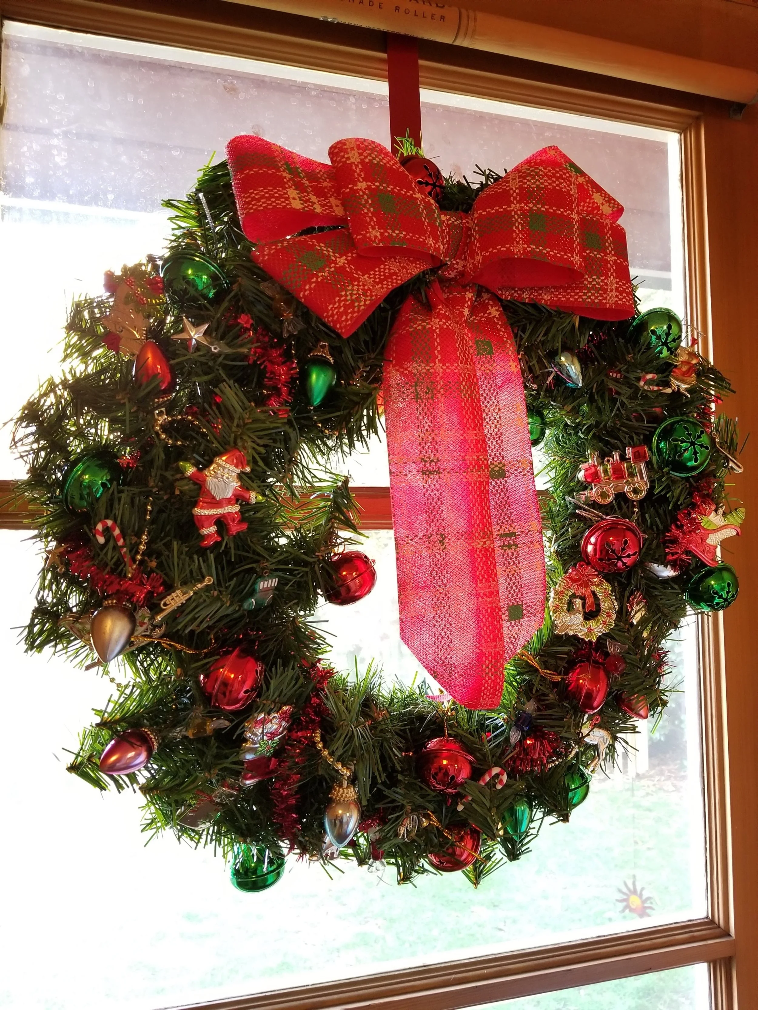 Our winter wreath- the bear was purchased, not made by either of us.